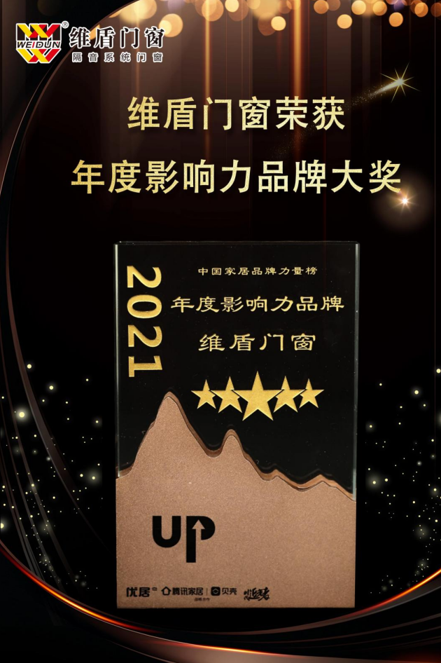 維盾門窗憑借優良的產品品質和良好的客戶口碑,榮獲年度影響力品牌大獎。